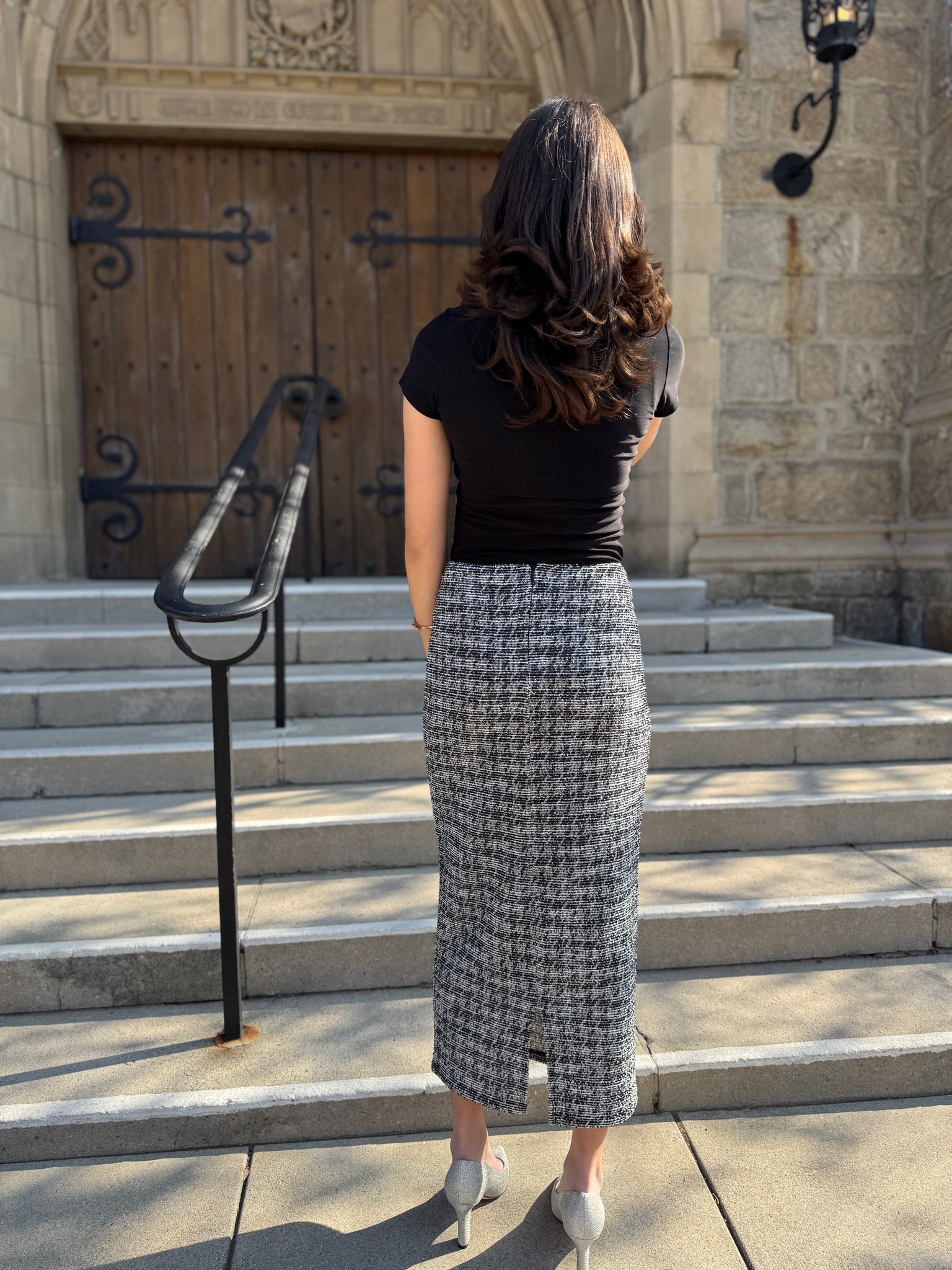 Wome's pencil long skirt with back slit and invisible zipper. The back slit design accompanies you for a comfortable day out. Made with a lightweight, soft, and cozy fabric that takes classy to a whole new level. The fabric slightly stretches, choose your size as you like your fit.